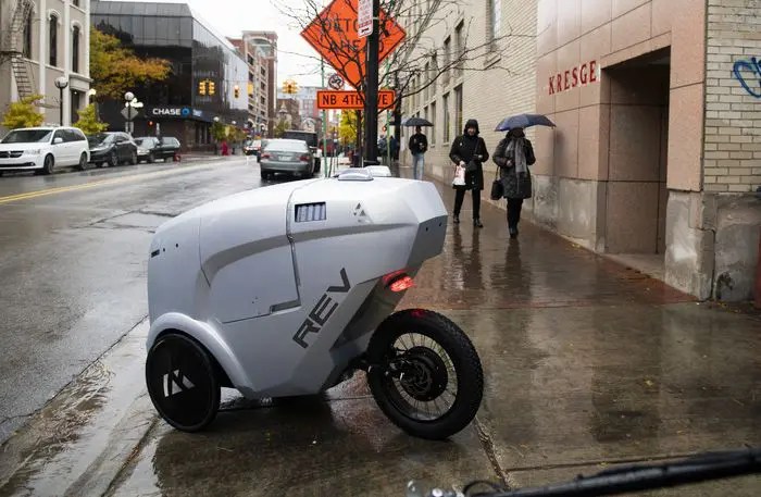 The company in 2019 created the REV-1 robot, a lightweight, self-driving robot that delivers food and groceries to Ann Arbor residents. Customers can order deliveries from Cafe Zola, Miss Kim, The Jagged Fork, Ray’s Red Hots, Tios Mexican Cafe and Tequila Bar, Wolverine Sushi Bar, Zingerman’s Delicatessen and the Produce Station.